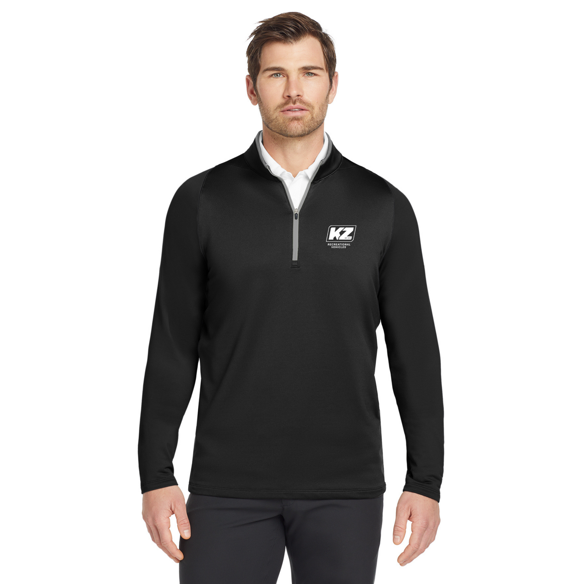 Built for the course, gym or just around town, this cover-up performs with comfortable stretch for uninhibited movement and Dri-FIT moisture management technology for exceptional cooling. The design includes a contrast collar and zipper, open cuffs and an open hem. The contrast Swoosh design trademark is embroidered on the upper left sleeve. Made of 7.6-ounce, 93/7 polyester/spandex Dri-FIT fabric.
